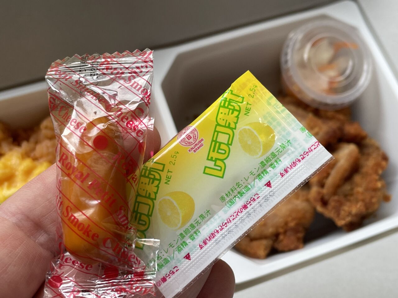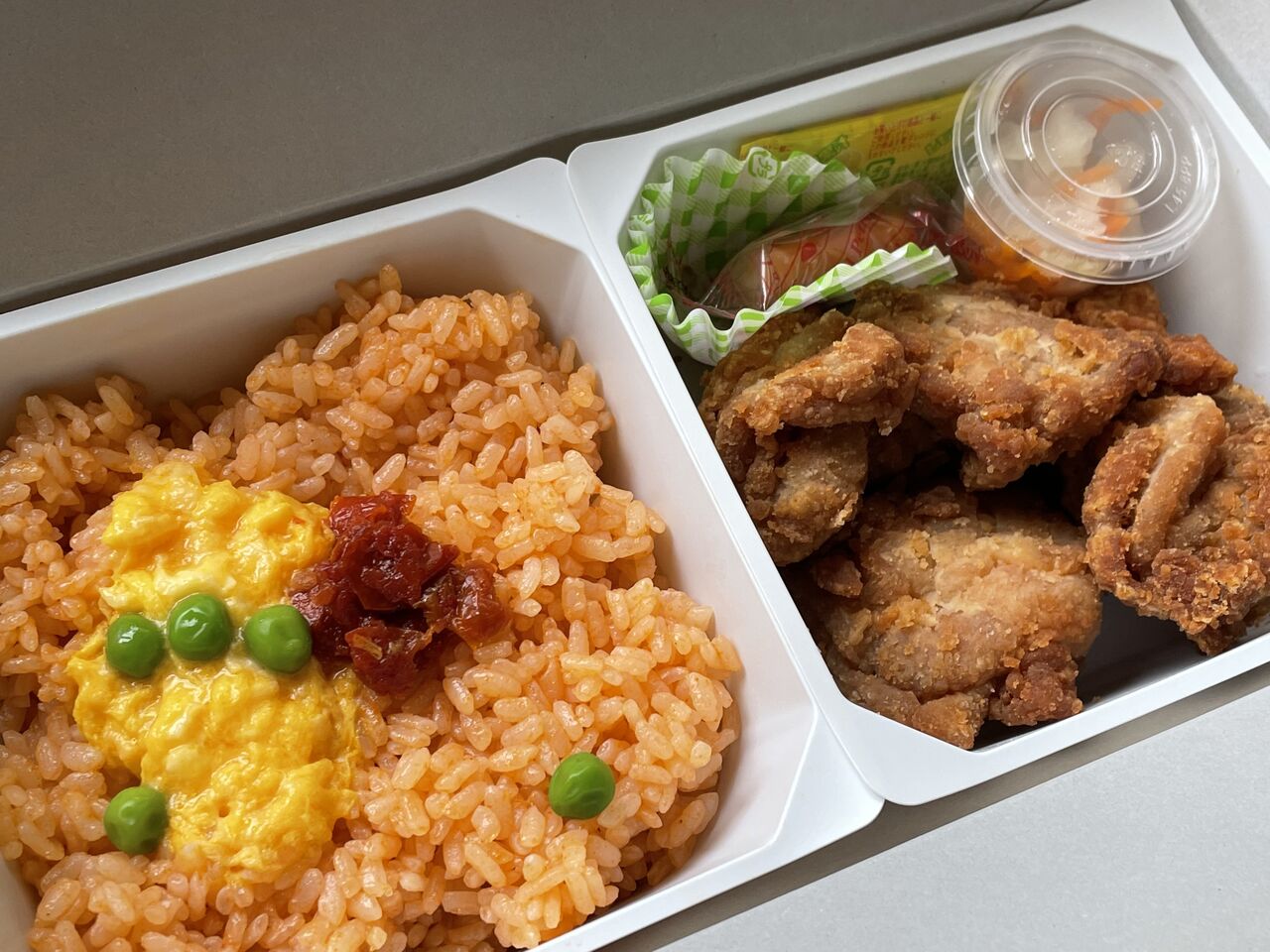 中身はこんな感じで チキンライスと唐揚げが別々のトレーに入れられて